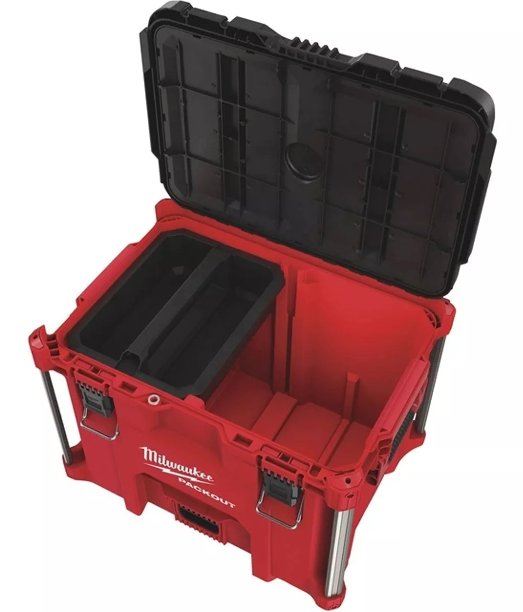 Nuestra caja de herramientas PACKOUT ™ XL está construida con polímeros resistentes a los impactos y esquinas reforzadas con metal para resistir las duras condiciones del lugar de trabajo. La solución de almacenamiento de herramientas se conecta con todos los demás componentes del sistema PACKOUT ™ a través de tacos de bloqueo integrados y tiene una capacidad de peso de 100 libras. Un sello contra la intemperie con clasificación IP65 protege las herramientas y los accesorios de la lluvia y otros escombros en el lugar de trabajo. La bandeja de organización interior mantiene su equipo organizado para adaptarse a sus necesidades. El sistema de almacenamiento modular PACKOUT ™ le permite personalizar y construir su sistema de almacenamiento para transportar y organizar fácilmente herramientas y accesorios. MILWAUKEE ™ PACKOUT ™ es el sistema de almacenamiento más duradero y versátil de la industria.