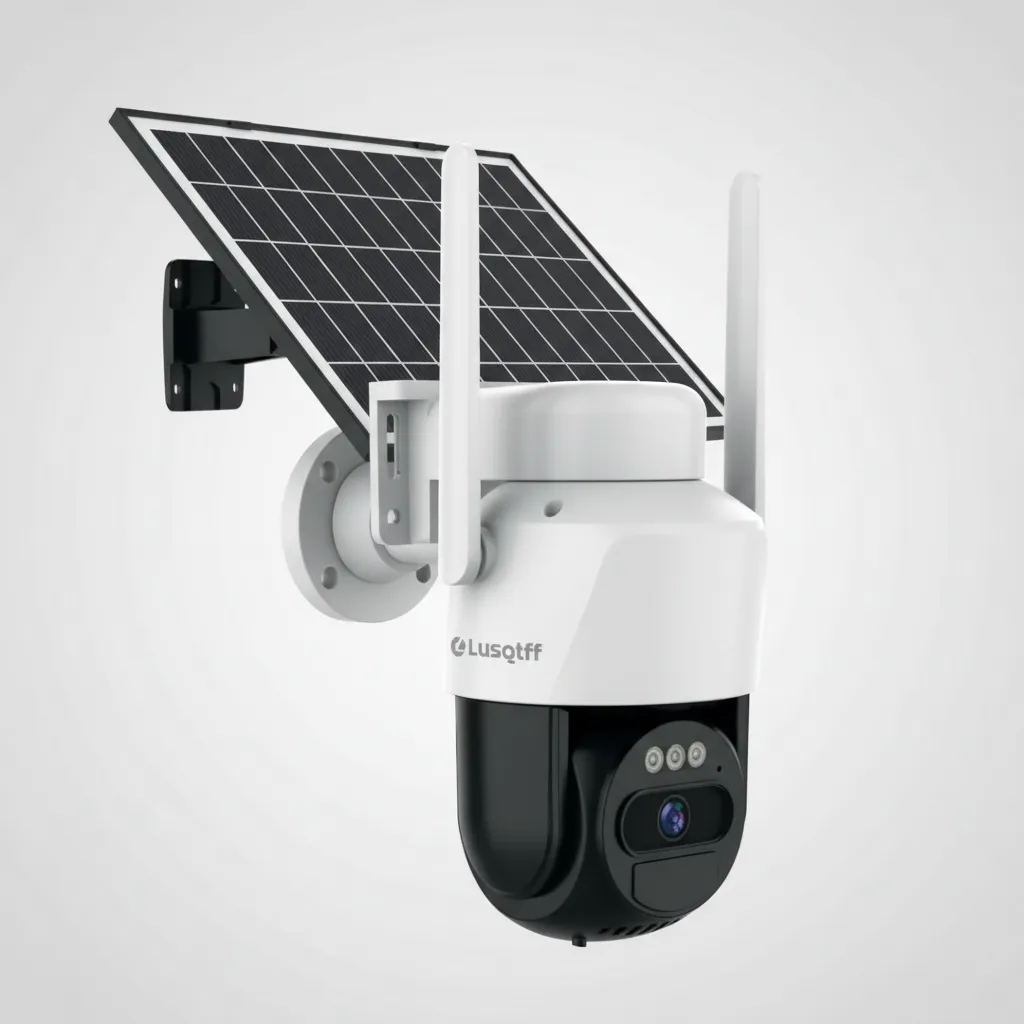 -Campo visual: Horix. 270° / vert. 90° -Zoom: NO. -Almac. y cap.: MicroSD hasta 256GB / NUBE. -Temperatura de trabajo: -10°C / 55°C. -Medidas (abierto): 229.8 x 115.88 x 138.6mm. -Batería: 6000 mAh Panel solar. -Seguimiento automático. -Visión nocturna a color. -WIFI 2.4G Y 5G. Bluetooth.