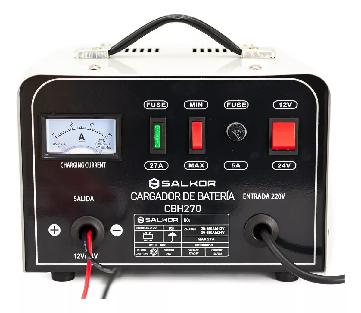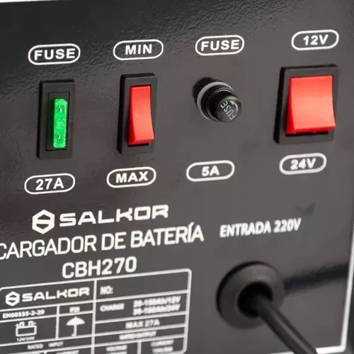 Entrada y Salida Poderosas: Con una entrada de 220V y una salida de 12 y 24 Volts, nuestro cargador de batería es capaz de cargar baterías de vehículos de diferentes voltajes de manera rápida y efectiva.