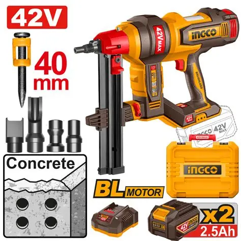 CLAVADORA P/CONCRETO A BATERIA 42V 40MM BRUSHLESS C/ 2 BAT 2.5AH + CARGADOR + ACCESORIOS + VALIJA INGCO CCNLI420602