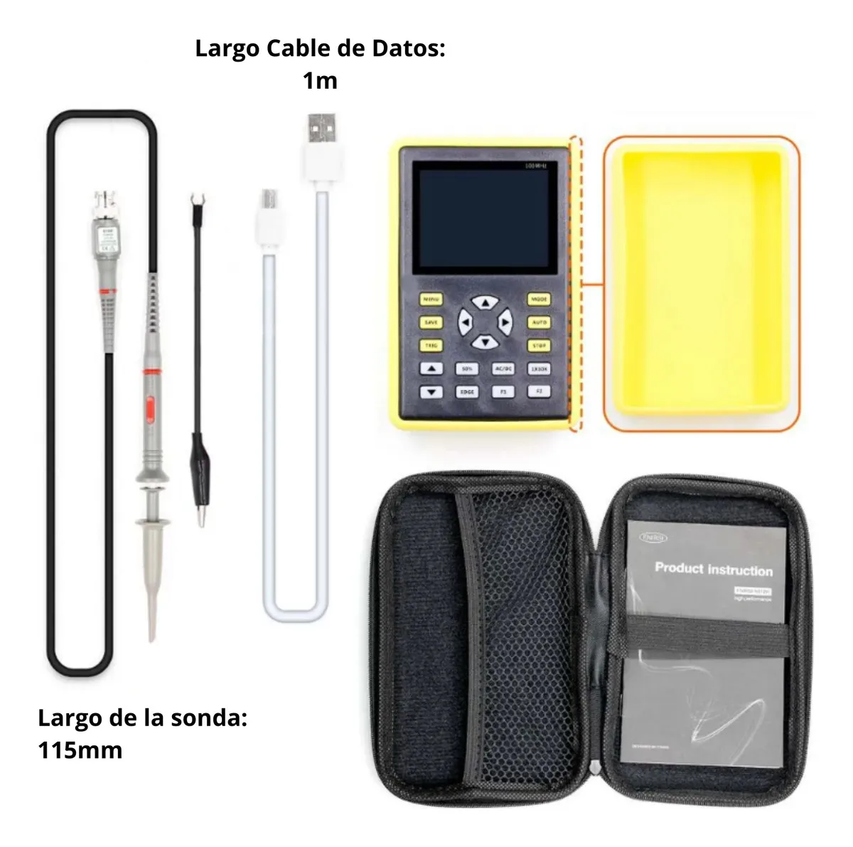 - Tasa de muestreo de 500 MSa/s para capturas detalladas.