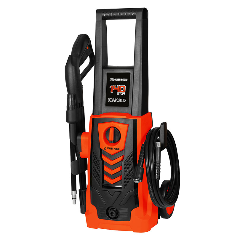 - HIDROLAVADORA ALTA PRESIÓN 140 BAR – 7 L/MIN Tipo: HU140HR Tensión: 220V – 50 Hz Potencia: 1600 W Presión máx: 140 Bar (14 MPa) Caudal: 7 l/min Peso: 7.5 kg Sistema auto-stop. apagado automático al soltar el gatillo Cable y tubo de alta presión de 5 metros de longitud Motor a Carbones – -Empuñadura vertical extendida para fácil traslado -Ruedas posteriores para facilitar el movimiento -Soporte porta cable y manguera Incluye: -Tubo alta presión -Pistola y lanza -Dosificador para detergente -Conector acople rápido