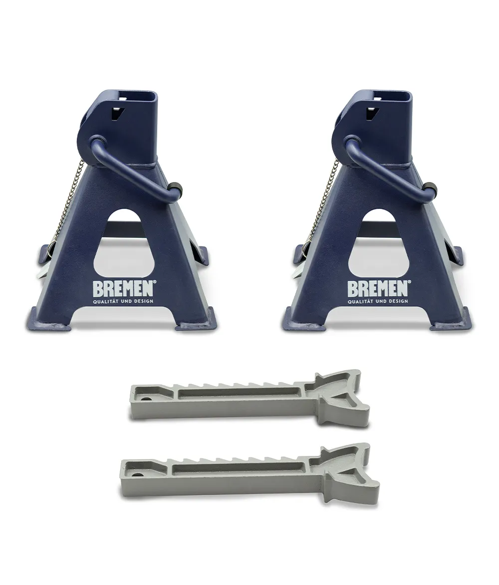 Los juegos de caballetes BREMEN, poseen un sistema de seguridad y posicionamiento rápido mediante cremallera que soporta hasta 3.000Kg