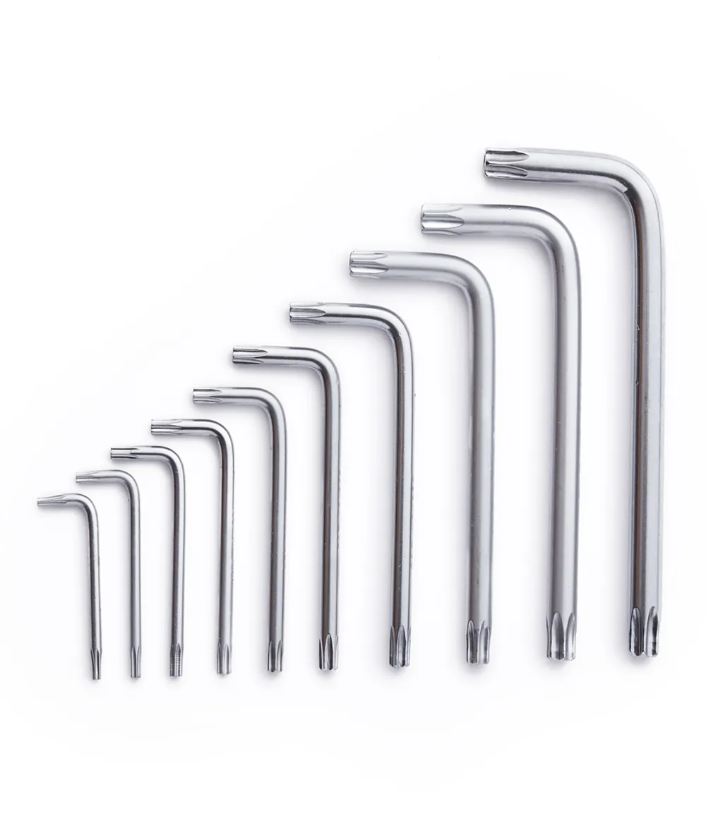 El juego de llaves torx en «L» tamper cortas BREMEN es una herramienta completa que cuenta con 10 medidas. Esta fabricada en acero S2, un material que ofrece tanto una buena resistencia al desgaste, como una alta dureza.