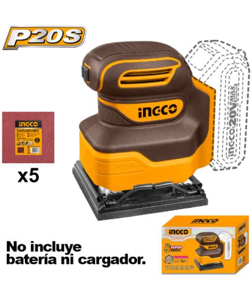 Lijadora Orbital a Batería Inalámbrica 20V Ingco CSHSLI2014