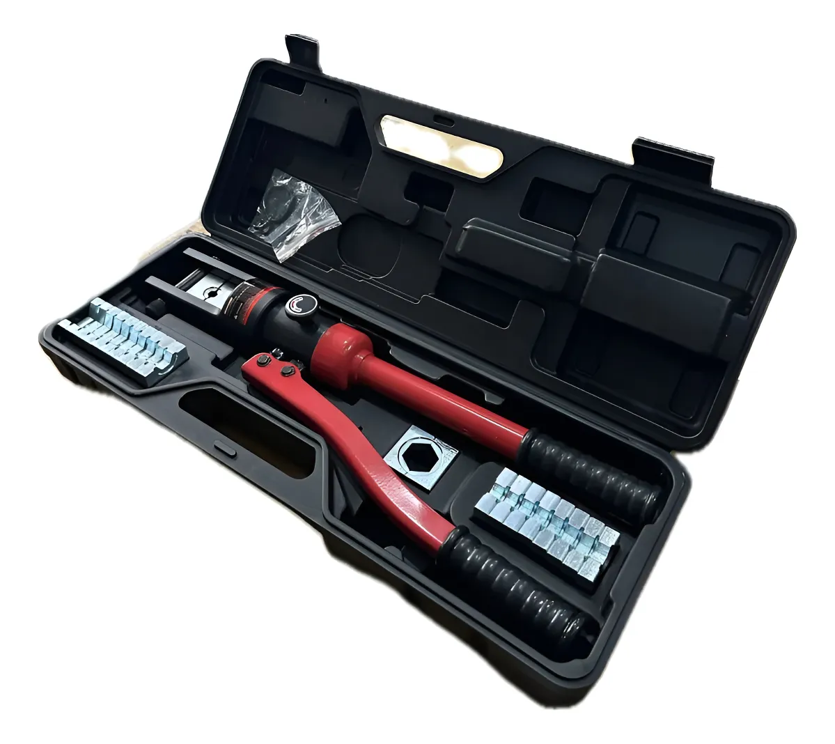 Es adecuado para la distribución de energía aérea y engarce de terminales de cobre y pasamuros hexagonales de cables subterráneos. Para engarzar cables eléctricos, sujetar los mismos con los conectores finales mucho más fácilmente que hacerlo manualmente con un par de alicates, permitiendo realizar conexiones seguras y duraderas. Rango de Prensado 16 – 300mm Fuerza de Prensado: 12T Máximo Recorrido: 20mm Tipo de Prensado: hexagonal Medidas de Accesorios (mm*): 16, 25, 35, 50, 70, 95, 120, 150, 185, 240, 300 La Pinza Hidráulica Terminales 16 A 300mm2 Eurotech modelo 7769 es la herramienta perfecta para quienes buscan eficiencia y precisión en sus trabajos eléctricos. Diseñada para ofrecer un rango de engarzado de 16 mm a 300 mm, se adapta a diversas necesidades y aplicaciones, garantizando resultados profesionales en cada uso. Con un peso de 2 kg, esta pinza proporciona un manejo cómodo y un control excelente, lo que facilita su uso en proyectos prolongados. Su construcción robusta asegura una larga vida útil y un rendimiento constante, haciendo de este producto una inversión inteligente para electricistas y técnicos. El diseño ergonómico del mango y la calidad de sus materiales permiten un agarre seguro y firme, optimizando la fuerza aplicada en el proceso de engarzado. La Pinza Hidráulica Eurotech 7769 es ideal para quienes valoran la eficiencia y buscan mejorar su experiencia en el trabajo.
