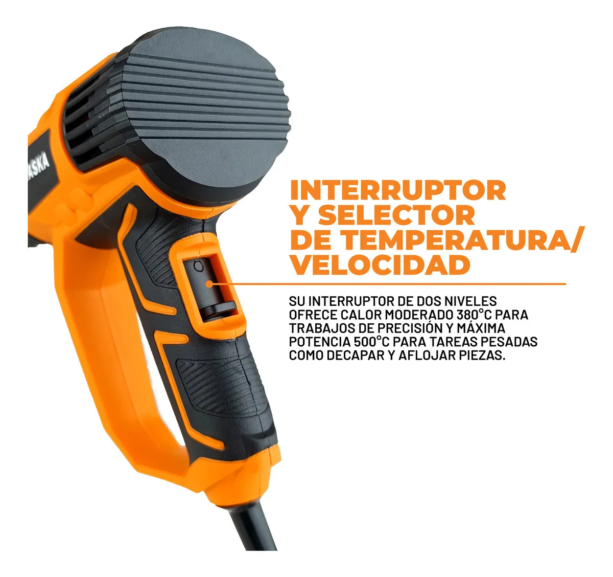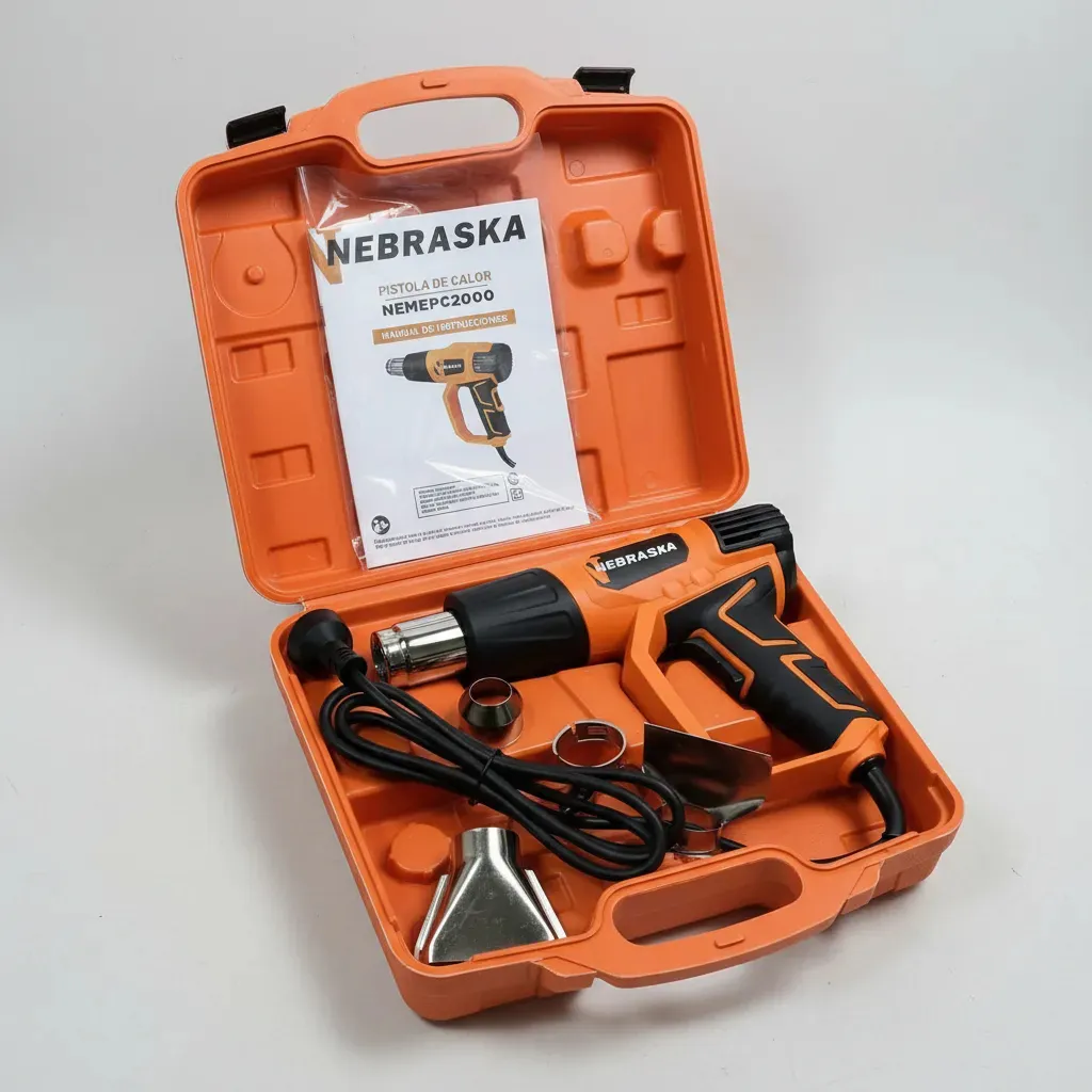 La Pistola Calor 2000w 2 Temperaturas Profesional Nebraska es la herramienta ideal para trabajos que requieren alta potencia y precisión. Con su potencia de 2000 W, podrás alcanzar temperaturas de hasta 500 °C, lo que te permitirá realizar tareas de soldadura, desoldadura, termoencogimiento y más. Además, cuenta con dos temperaturas ajustables, 380 °C y 500 °C, para adaptarse a diferentes necesidades. La marca Nebraska garantiza calidad y durabilidad en todos sus productos, y esta pistola de calor no es la excepción. Además, viene acompañada de un práctico maletín que te permitirá transportarla de manera segura y cómoda. El modelo NEMEPC2000 es perfecto tanto para uso profesional como doméstico. Su diseño ergonómico y liviano te brindará comodidad durante su uso, evitando la fatiga en largas jornadas de trabajo.