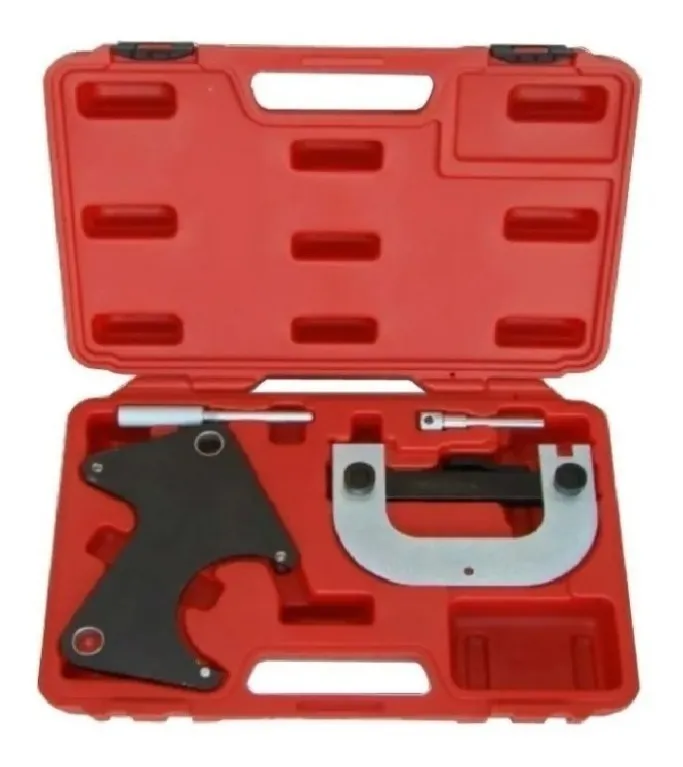 Herramientas para Puesta a Punto Linea Renault Motores K4M – K4J – F4P – F4R Para Cambio de Correas y Puesta a Punto Distribución Vehiculos Clio, Megane, Scenic, Logan, Kangoo Uso profesional El ajuste de la polea del árbol de levas mantiene las dos poleas en su lugar mientras se cambia la correa de la leva. Atornillado al centro de las levas usando los pernos existentes. Pasador de bloqueo del cigüeñal. Pin de temporización TDC de 5 mm. Herramienta para ajustar cigüeñal. Herramienta para alinear polea de cigüeñal.