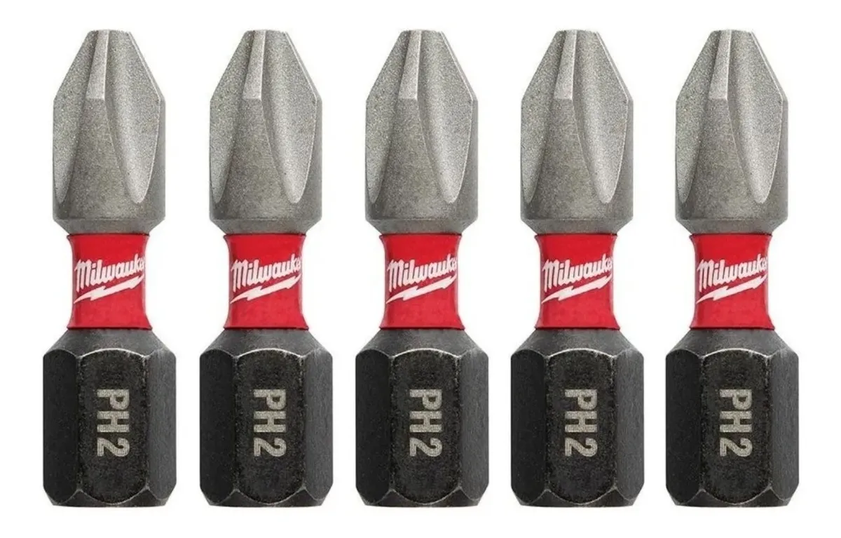 Características: Set 5 Piezas Milwaukee Puntas Alto Impacto PH 2 x 25.4 mm Codigo 48-32-4601 Atornilladores de Impacto Encastre Hexagonal 1/4″ SHOCKZONE ™ OPTIMIZADO Absorbe el par de torsión máximo y evita la ruptura PREPARADO AJUSTE MACHINED TIP ™ Evita el desprendimiento y reduce el bamboleo ACERO PERSONALIZADO ALLOY76 ™ Maximiza la resistencia al desgaste y los golpes