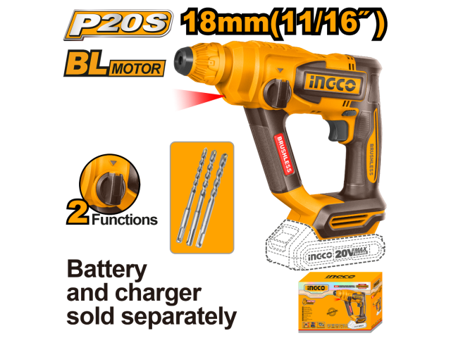 ROTOMARTILLO A BATERÍA 20V P20S SDS PLUS 1.8J + 3 MECHAS S/BAT Y S/CARGADOR