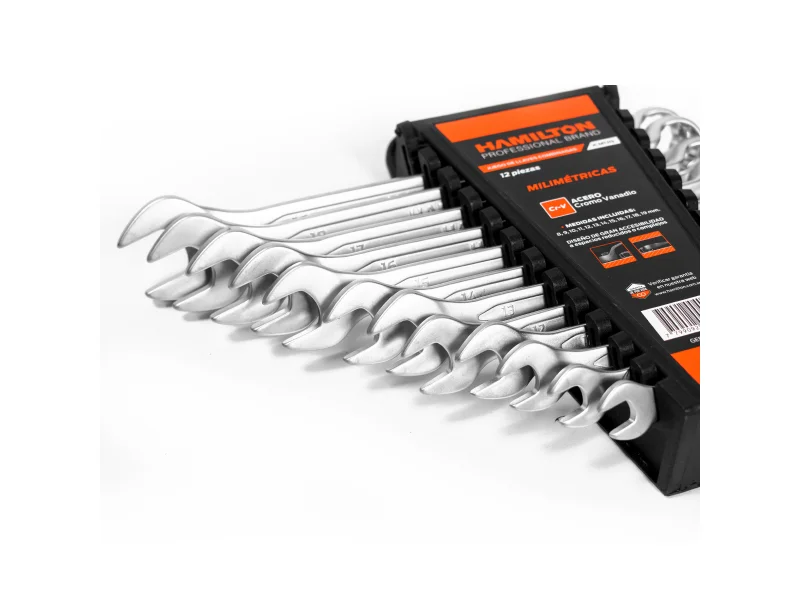 - Medidas: 8, 9, 10, 11, 12, 13, 14, 15, 16, 17, 18 y 19 mm.Forjadas en Acero Cromo Vanadio.